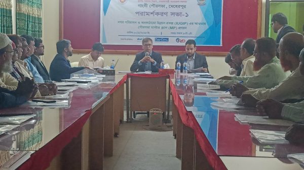 মেহেরপুরের গাংনী পৌরসভার টেকসই নগর উন্নয়ন নিশ্চিত করতে “নগর পরিচালন ও অবকাঠামো উন্নয়ন প্রকল্প (IUGIP)” এর আওতায় পৌরসভা মাস্টার প্ল্যান প্রণয়নের লক্ষ্যে এক পরামর্শক সভা অনুষ্ঠিত হয়েছে। সোমবার (১০ নভেম্বর)